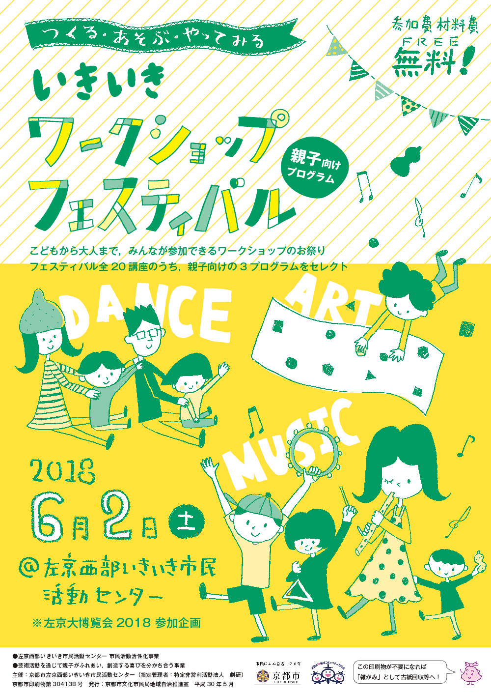 2018年に京都市左京西部いきセンで行われたワークショップフェスティバル。